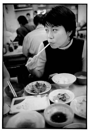 ガラッとガラスケースを開けて,「おばちゃん,あと,みそ汁と,ご飯(中)ね」の恵子.